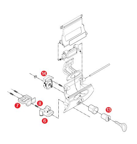 Pružinka, tlačítko a západka ze spodní části obrázku nejsou součástí balení.