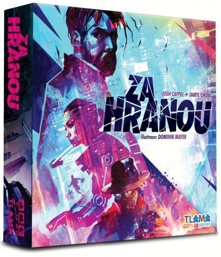 Za hranou je napínavá kyberpunková strategická hra, která vás svým jedinečným příběhem přenese do dystopické budoucnosti. Ovládejte postavy na herním plánu a využijte své akce ke splnění cílů a nashromáždění sad důkazů. Na jakou stranu zákona se nakonec postavíte?Píše se rok 2087, centralizované vlády již dávno padly. Zbývají pouze malé a roztříštěné městské státy, mezi nimi i New Dawn City, které je už teď na pokraji chaosu. Zločinecký Syndikát se na tato oslabená města zaměřuje, postupně přebírá nadvládu nad stávajícími gangy a s jejich pomocí nakonec ovládne celé město. Ve hře Za hranou se z vás stanou agenti přísně tajné organizace, která má za cíl Syndikát zastavit. Za každou cenu.Hlavní předností zločinců Syndikátu jsou kybernetická vylepšení. A vy jste nyní zjistili, jak obrátit tuto zbraň proti nim. S pomocí experimentálního programu „Hák“ dokážete nabourat mikročipy v nervové soustavě zločinců a ovládnout je. V utajení se vydáte do myslí zločinců a ve snaze proniknout co nejhlouběji do struktury Syndikátu jim pomáháte páchat stále ohavnější zločiny. Jedině tak můžete získat dostatek důkazů na zmaření plánu Syndikátu.V každém kole „zahákněte“ nové zločince a manipulujte jejich činnost ve vlastní prospěch. Navíc, čím déle setrváte v mozku zločince, tím lépe je budete moci ovládat – možná dokonce ovládnete i jejich zvláštní schopnost a zvýšenou fyzickou výdrž. Přestože vaše tělo se nachází v tajné laboratoři daleko od akce, zdaleka nejste v bezpečí. Život v mysli zločince si vybere daň na vašem svědomí.Páchejte zločiny, sbírejte důkazy, využijte každou stopu, ale hlavně… pokuste se nepodlehnout tíze vlastních rozhodnutí a zůstaňte sami sebou. Musíte bojovat ze všech sil, jinak skončíte nenávratně Za hranou.Hra je určena pro 1-5 hráčů od 12 let.Herní materiál:• 8 městských zón• 5 hráčských konzolí• 1 desku Syndikátu• 1 desku důkazů• 70 karet zločinů• 72 karet dilemat• 10 kartonových figurek zločinců• 10 žetonů zaháknutí• 50 žetonů nadvlády• 72 žetonů důkazů• 8 žetonů předmětů• 1 figurka Strážce• 2 zátarasy• 9 složek• 38 žetonů podpory• 25 žetonů tolerance• 6 žetonů úkolů• 102 žetonů informací• 1 ukazatel kapitoly• 6 žetonů pátrání• 10 přehledových karet• 1 deska Echo• 1 žeton pokroku• 2 kostky Echo• 1 pravidla hry