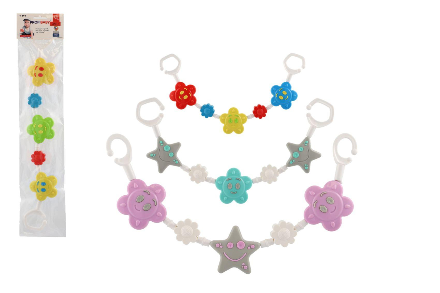 Zábrana na kočárek růuznobarevné hvězdičky+sluníčko. Hračka je vyrobena v Česku, bez ftalátů a má české atesty.