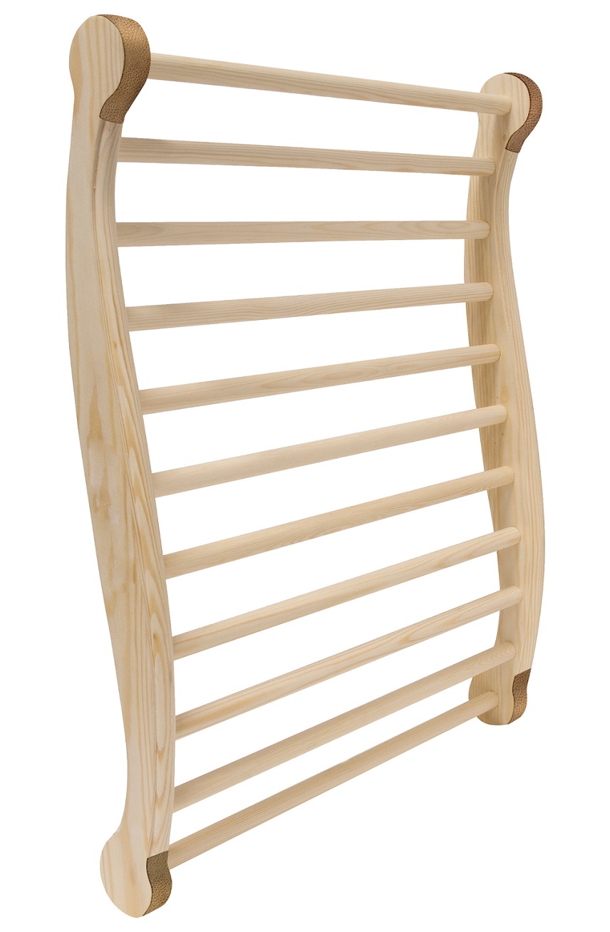 Materiálem opěrky je dřevo borovice s výraznými letokruhy. Konce opěrky jsou potaženy, aby nedošlo k poškrábání dřeva v sauně.