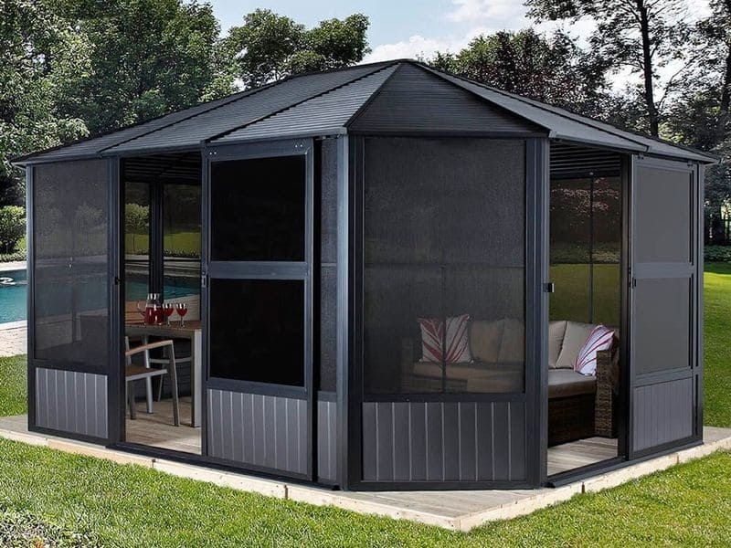 Hliníkový altán je praktickým a elegantním řešením, které vám v létě poskytne stín a útulné útočiště během dlouhých letních večerů. Rozměry: 384×489×281 cm. Barva: antracit. Altán je stavba BEZ zasklení. Vhodný pro celoroční využití. Okna altánu nemají skleněnou výplň Příslušenství pro altány najdete zde Inspirace a nápady na zahradní posezení Objednejte si externí montáž altánu Zakupte produkt Zahradní altán – Charleston 1215 (antracit) z kategorie Heureka.cz | Bydlení a doplňky | Bytové doplňky | Zahradní doplňky | Zahradní domky, altány, pergoly | Zahradní stany a altány za cenu 111028.15 Kč.