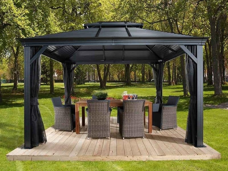 Hliníkový altán je praktickým a elegantním řešením pro letní grilování i odpočinek. Rozměry: 299×364×291 cm. Barva: antracit. Vhodný pro celoroční využití. Příslušenství pro altány najdete zde Inspirace a nápady na zahradní posezení Objednejte si externí montáž altánu