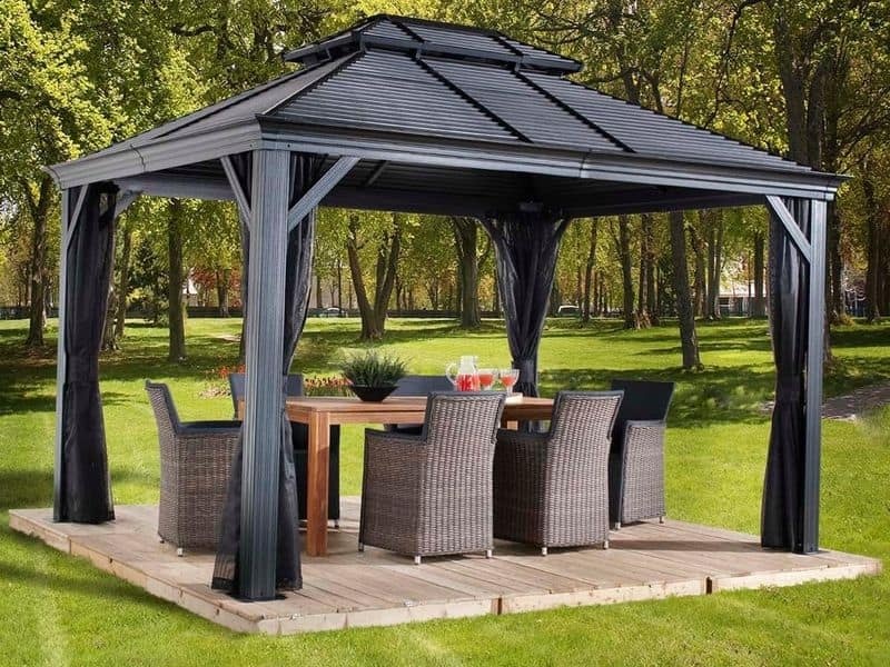Hliníkový altán je praktickým a elegantním řešením pro letní grilování i odpočinek. Rozměry: 299×425×291 cm. Barva: RAL 7012. Vhodný pro celoroční využití. Příslušenství pro altány najdete zde Inspirace a nápady na zahradní posezení Objednejte si externí montáž altánu