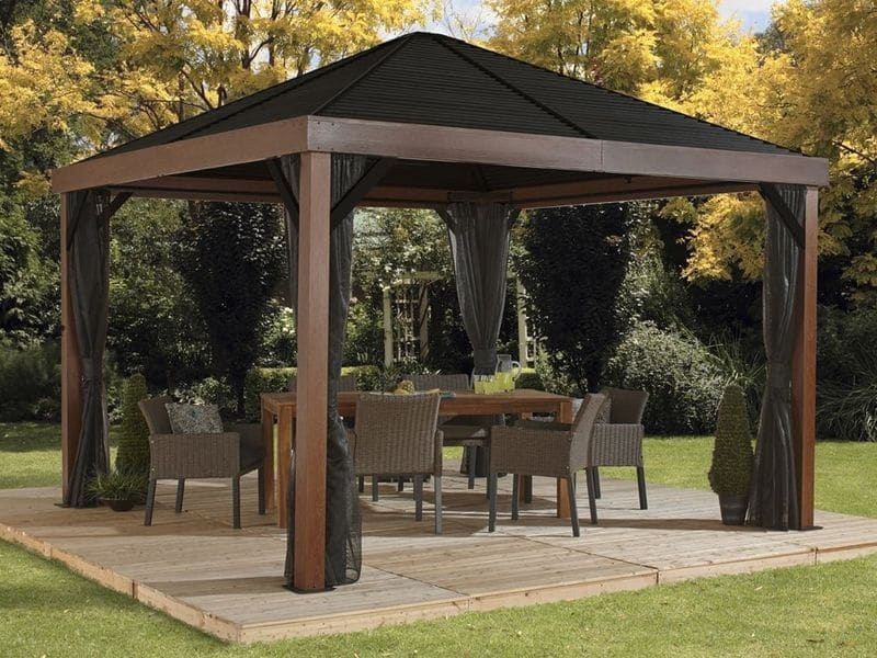 GEOMAT Zahradní altán (antracit) LanitPlast 43, rozměry: š. × d. 3,97 × 2,97 m + PC 6 mm (bronz)