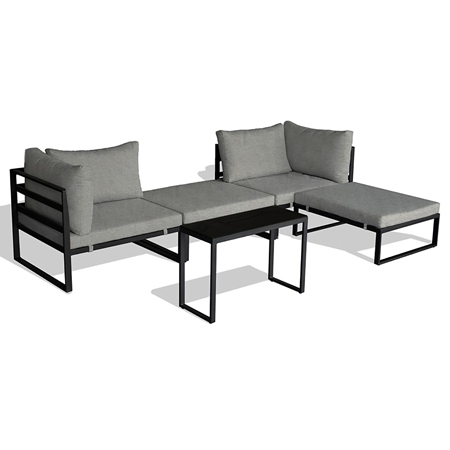 Moderní zahradní sestava značky Autronic je dokonalým řešením pro váš venkovní prostor. Sestava je multifunkční a umožňuje variabilní uspořádání podle vašich potřeb. Pevná kovová konstrukce s práškovou povrchovou úpravou v antracitových barvách je doplněna pohodlnými světle šedými látkovými sedáky, které jsou pevně připevněny ke konstrukci pro maximální stabilitu. Deska stolku z tvrzeného skla dodává sestavě elegantní vzhled, zatímco moderní design zaručuje stylový doplněk do vaší zahrady nebo na terasu. Set je tvořen čtyřmi samostatnými moduly, které lze skládat do libovolných uskupení. Součástí setu jsou dva otomany, dvě křesla a stolek. Jednotlivé části můžete sestavit tak, jak zrovna potřebujete. Rozměry křeslo: 65 × 90 × 75 cm (v x š x h) Rozměry otoman: 37 × 87 × 72 cm (v x š x h) Rozměry stolek: 50 × 75 × 30 cm (v x š x h) Tento set kombinuje komfort a odolnost, ideální pro relaxaci i posezení s přáteli.