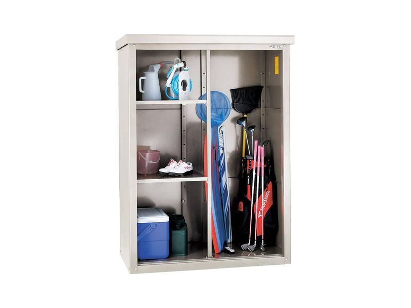 Kovová zahradní skříň Guardian D63 nabízí praktický úložný prostor pro nářadí, příslušenství k bazénu nebo zahradní techniku. Konstrukce z oceli s Aluzink povrchovou úpravou je odolná vůči povětrnosti i korozi, součástí jsou 2 výškově nastavitelné police s nosností 55 kg a zámek s dvojicí klíčů. Rozměry: 98 × 172 × 187 cm. Barva: šedá. Zakupte produkt Zahradní skříň – Guardian D63 z kategorie Heureka.cz | Bydlení a doplňky | Bytové doplňky | Zahradní doplňky | Zahradní úložné boxy za cenu 32759.05 Kč.