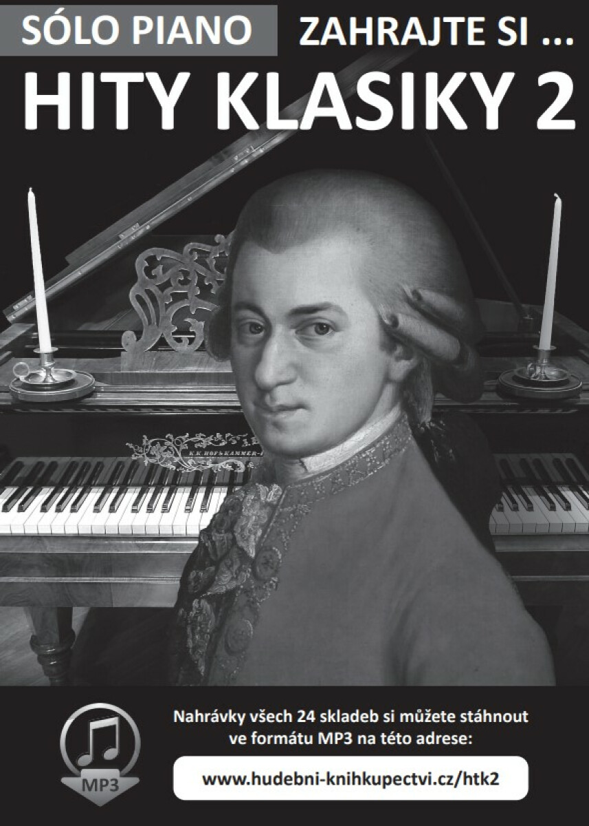 Noty na snadný sólo klavír. Druhý díl úspěšného titulu Zahrajte si … Hity klasiky, doplněného o bonus ve formě demonstračních ukázek všech 24 skladeb ve formátu Mp3, které si můžete stáhnout z webové adresy, kterou najdete v knize. Antonín Dvořák - LargoAntonio Vivaldi - JaroBedřich Smetana - VltavaErik Satie - Gymnopédie no. 1Franz Xaver Gruber - Tichá nocFryderyk Chopin - EtudaFryderyk Chopin - Polonéza č. 3Georges Bizet - HabaneraGeorges Bizet - Toreadorova píseňGioacchino Rossini - Lazebník sevillskýGioacchino Rossini - Vilém TellGiuseppe Verdi - Va, pensieroGiuseppe Verdi - Ó, jak je měnivé…Jacques Offenbach - BarcarolleJohann Sebastian Bach - Menuet v GLudwig van Beethoven - Měsíční sonátaLudwig van Beethoven - Óda na radostLudwig van Beethoven - OsudováLuigi Denza - Funiculi, FuniculaMarc-Antoine Charpentier - Preludium k Te DeumScott Joplin - The EntertainerWolfgang Amadeus Mozart - Menuet v FWolfgang Amadeus Mozart - Turecký pochodZdeněk Fibich - Poem