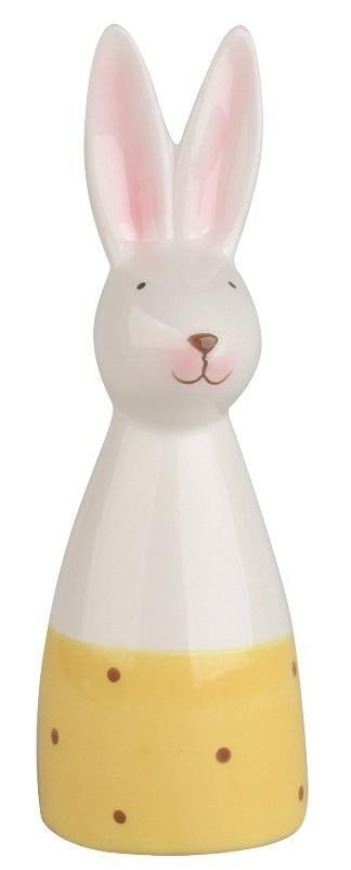 Zajíc se žlutým dekorem z keramiky na postavení 5 x 15,5 cm