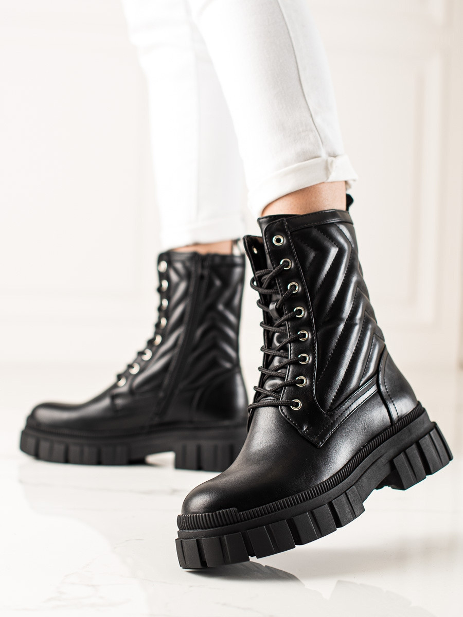 Zajímavé dámské kotníčkové boty černé na plochém podpatku 37