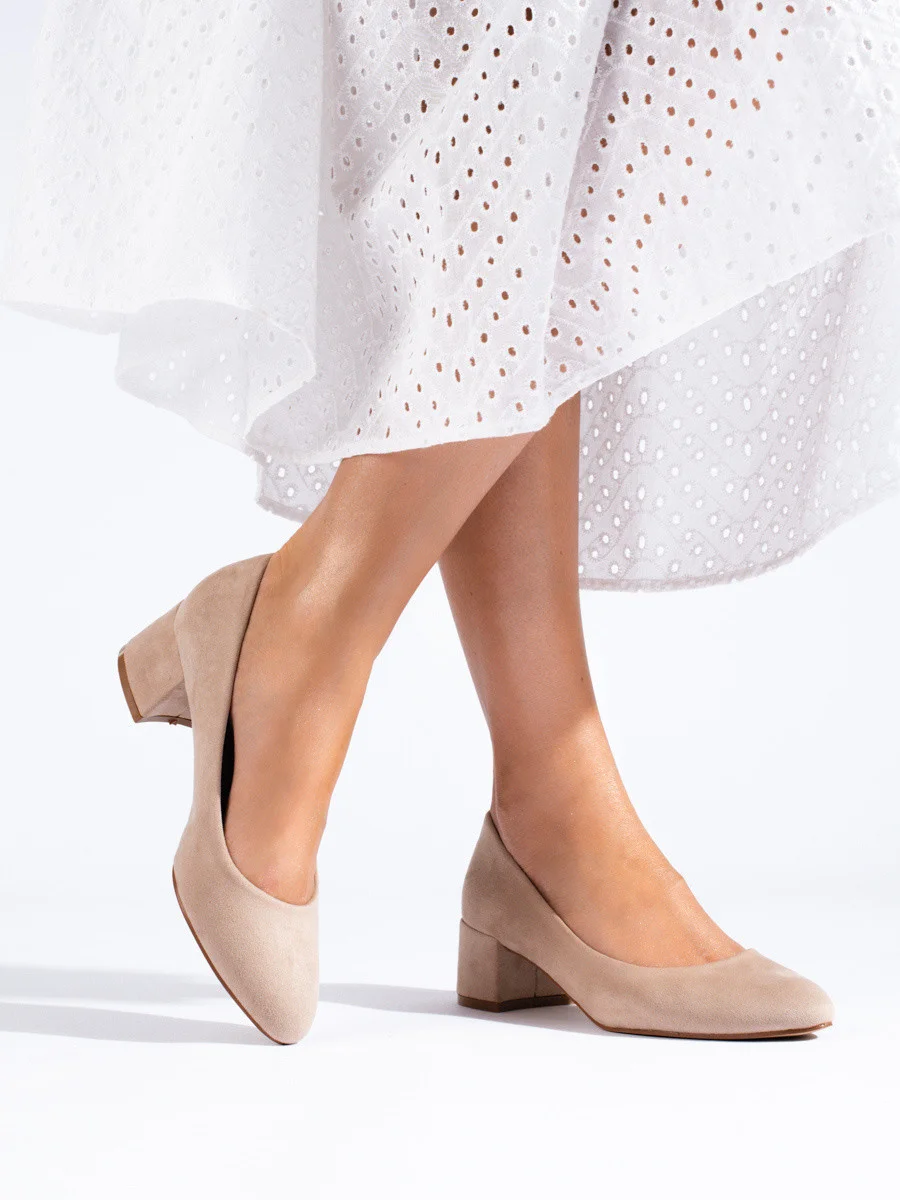Zajímavé hnědé dámské lodičky na širokém podpatku 36