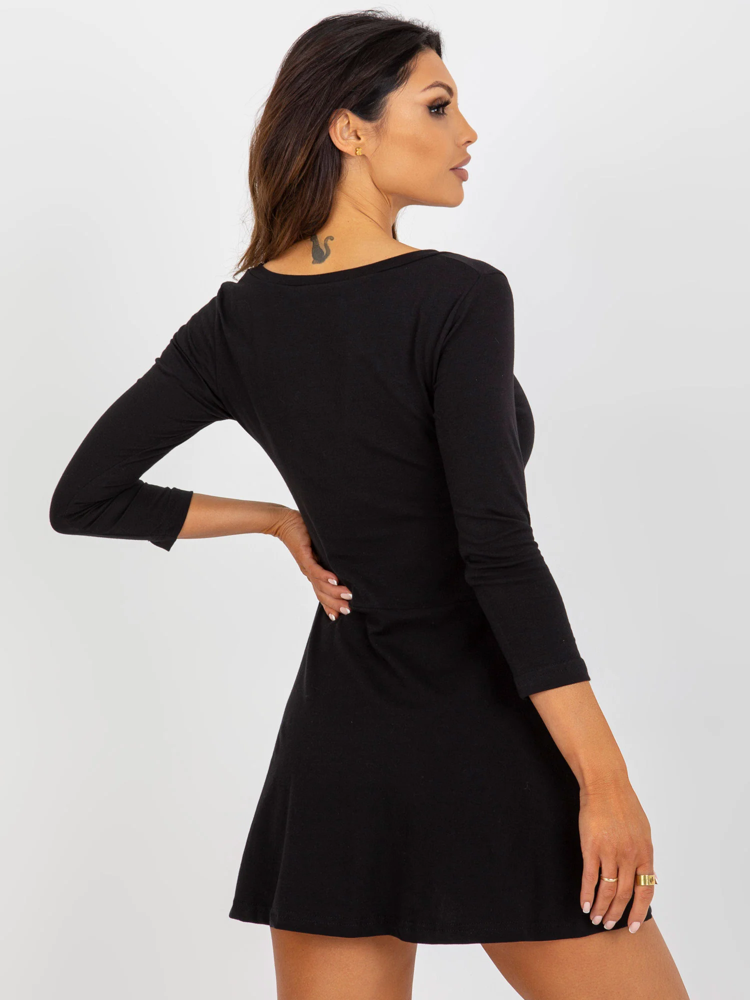ANGELA Klasické dámské šaty ve vínové bordó barvě výstřihem dlouhými rukávy 403-2