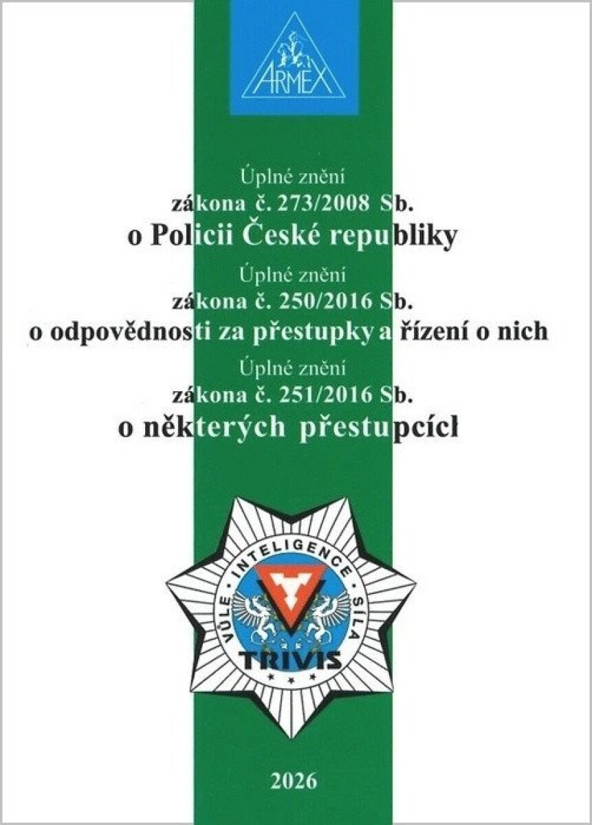 Kapesní vydání zahrnuje zákon č. 273/2008 Sb., o Policii České republiky (ve znění pozdějších předpisů včetně poslední novely č. 230/2025 Sb.), zákon č. 250/2016 Sb., o odpovědnosti za přestupky a řízení o nich (ve znění pozdějších předpisů včetně poslední změny č. 78/2025 Sb.), a zákon č. 251/2016 Sb., o některých přestupcích (ve znění pozdějších předpisů včetně poslední novely č. 285/2025 Sb.). Je určeno všem příslušníkům Policie České republiky, zejména však příslušníkům pořádkové a dopravní policie operujícím v terénu. Výborně se doplňuje s kapesním vydáním Trestního zákona. Praktický formát zákonů dovoluje každodenní bezproblémové nošení a efektivní používání. Studentům učebního předmětu Veřejný pořádek vřele doporučujeme kapesní zákony plně využívat při studiu publikace Bezpečnostní příprava, která je základním studijním pramenem tohoto předmětu. br br Tato publikace vznikla za přispění společnosti TRIVIS a.s. a WAKENHAT s.r.o. br br Úplné znění, včetně doplňků, aktualizováno k 1.2.2026.