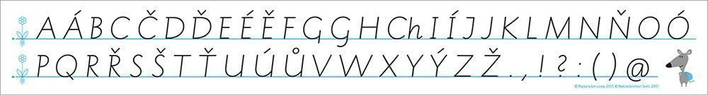 Záložka s abecedou Comenia Script pro 2. ročník základní školy. Obsahuje tvarové varianty písmen a číslic.