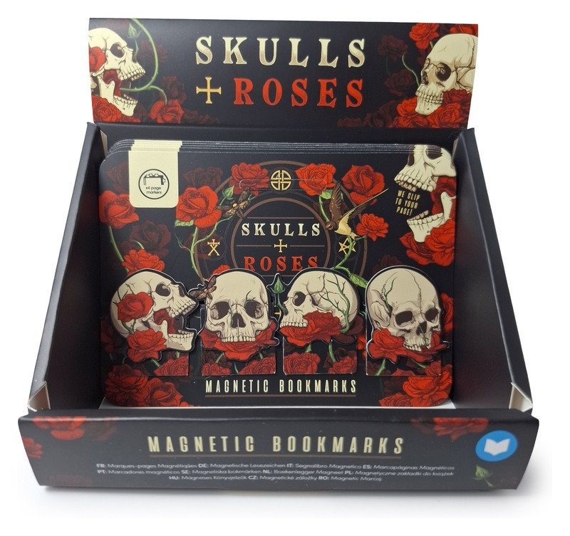 Záložky do knihy magnetické 4ks - Lebka a růže
