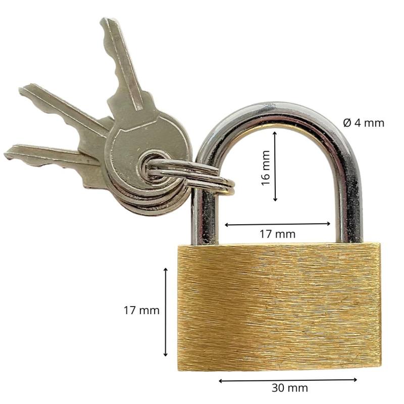 Pozn. náhrada za produkt 123030 Zámek visací mosazný, 30 mm