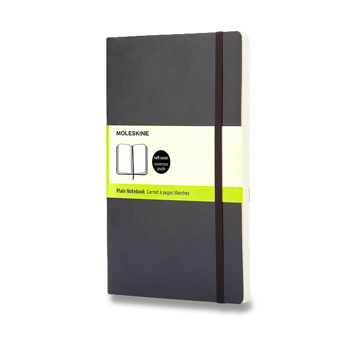 Zápisník s měkkou, ve hřbetu šitou vazbou v kartonových deskách, obepnutý pružnou páskou proti samovolnému otevírání. Zápisník je vybaven pořadačem poznámek, který je vyroben z tkaniny a kartonu, textilní záložkou a letákem s historií MOLESKINE. Gramáž papíru 70 g/m2, neobsahuje kyseliny. Rozměr: 13 x 21 cm, 96 listů, čistý