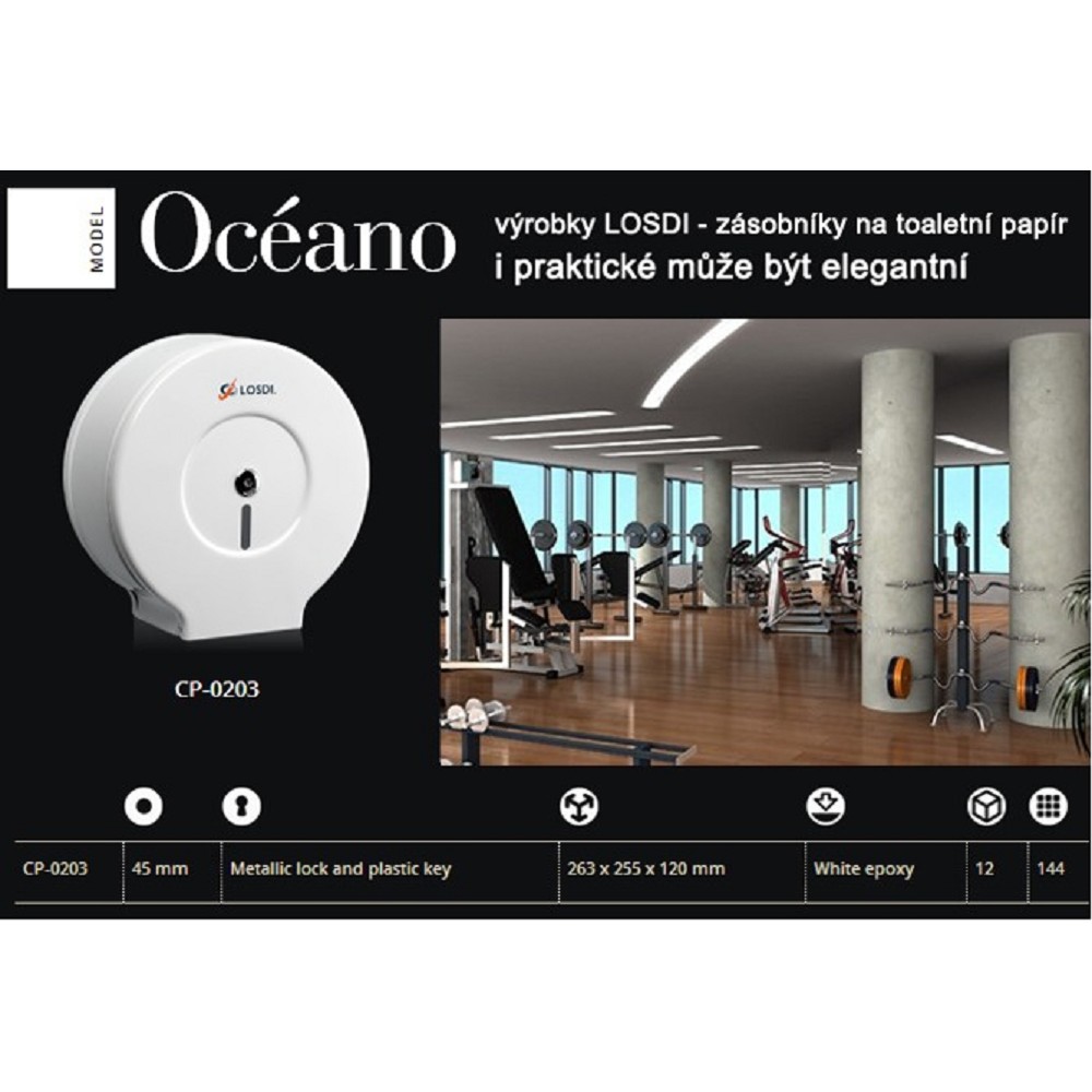 Zásobník toaletního papíru kovový bílý LOSDI 24cm CP-0203 Matný nerezový zásobník toaletního papíru, uzamykatelný, pro role do průměru 24 cm Kod CP-0203 Materiál:kovový bílý Rozměr v x š x d (mm) 263 x 255 x 120