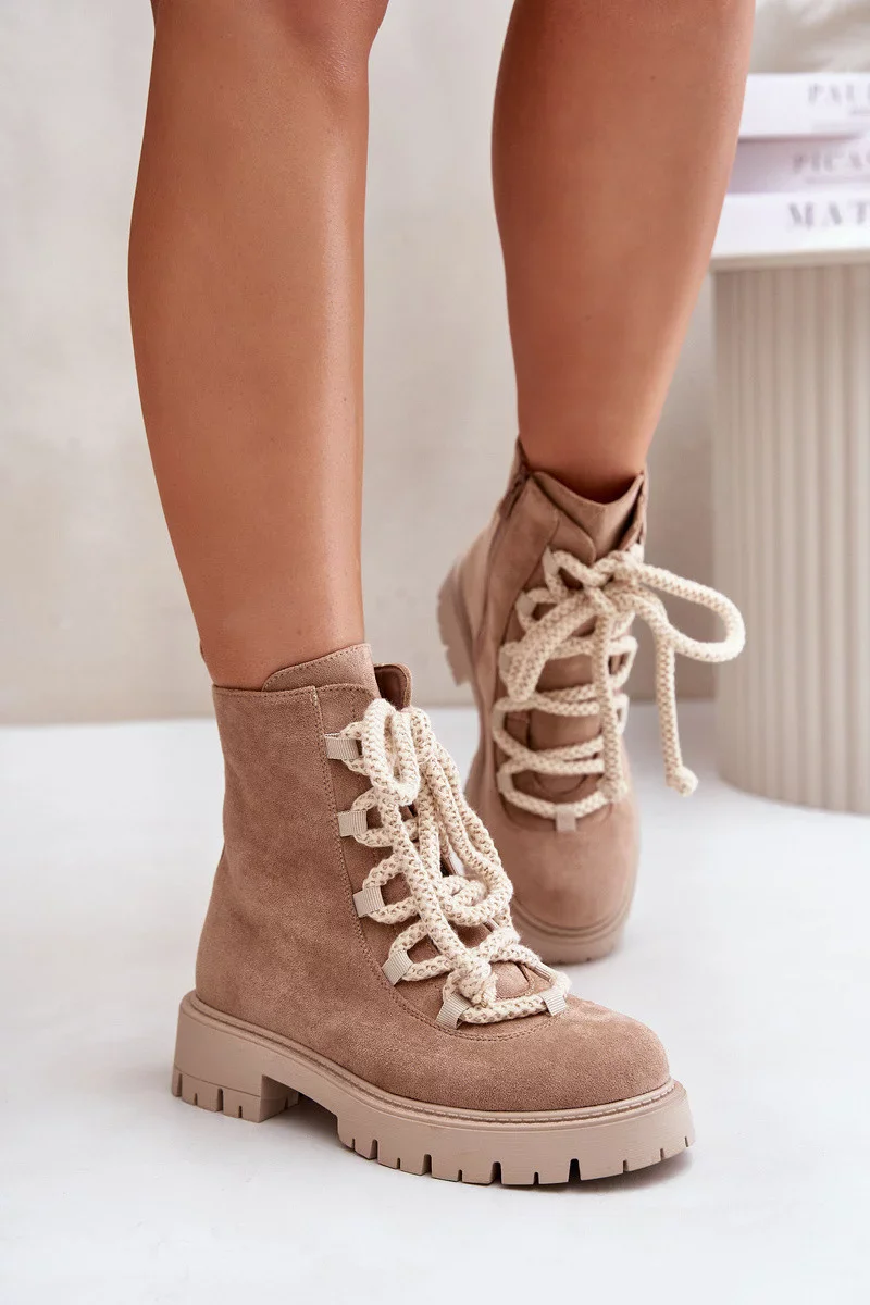 Domů Oblečení a móda Obuv Dámské boty Zateplené kotníkové boty z eko semiše na zip béžové Caellita 36