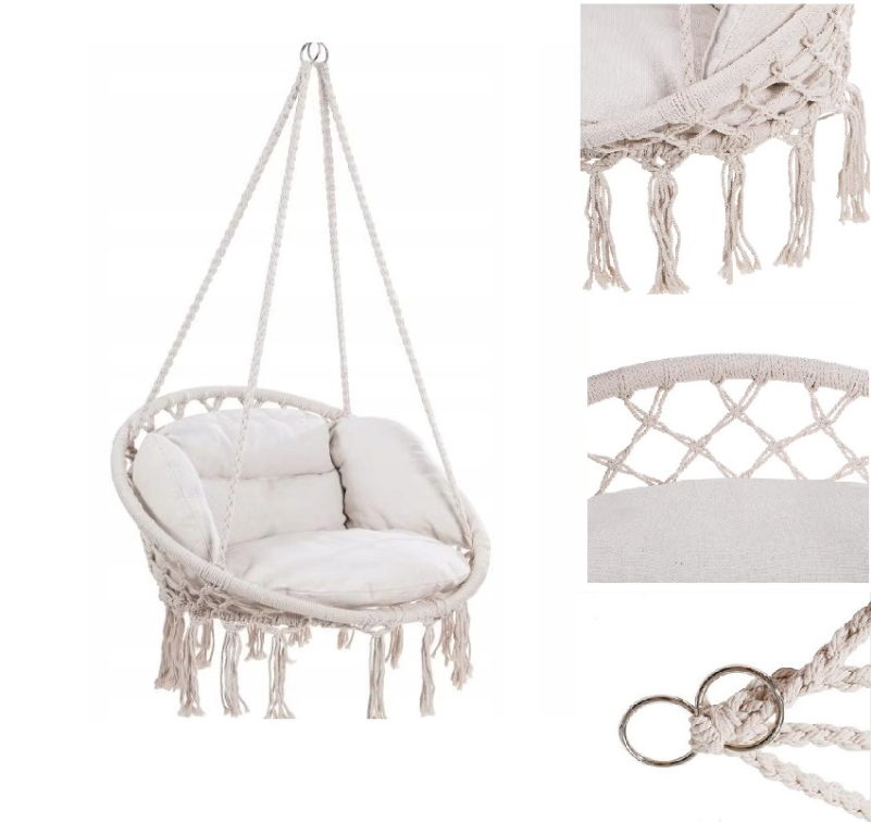 Originální závěsné křeslo zatraktivní každý interiér, ozdobné prýmky a střapce podtrhnou moderní design. Robustní rukojeť umožňuje pohodlné zavěšení na strom, houpačku nebo háček připevněný ke stropu. To vše vám umožní relaxovat s oblíbenou knihou nebo hudbou. Skvěle se hodí i jako houpačka pro děti. Jak vybrat tu správnou houpačku? Při výběru vhodné houpačky je třeba zvážit několik kritérií. Jedním z nich je jeho umístění. Pokud máte větší terasu nebo zahradu, můžete se rozhodnout pro větší houpačku pro více osob. Jinak můžete zvolit čapí hnízdo, které značně šetří místo. Případně, pokud si chcete užít sluníčka, určitě doporučujeme houpací síť nebo houpací síť. Specifikace: Průměr opěradla:80 cm Zádová opěra:37 cm Délka lana:90 cm Hmotnost:3,5 kg Maximální nosnost:120 kg Použití:venkovní/vnitřní