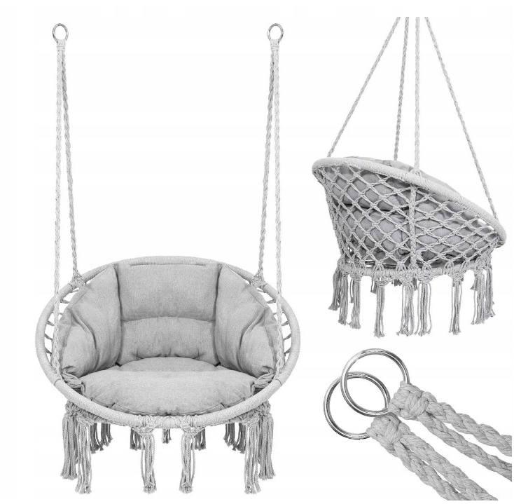 Originální závěsné křeslo zatraktivní každý interiér, ozdobné prýmky a střapce podtrhnou moderní design. Robustní rukojeť umožňuje pohodlné zavěšení na strom, konstrukci houpačky nebo hák připevněný ke stropu. To vše vám umožní relaxovat s vaší oblíbenou knihou nebo hudbou. Skvěle se hodí i jako houpačka pro děti. Jak vybrat tu správnou houpačku? Při výběru vhodné houpačky je třeba zvážit několik kritérií. Jedním z nich je jeho umístění. Pokud máte větší terasu nebo zahradu, můžete se rozhodnout pro větší houpačku pro více osob. Jinak můžete zvolit čapí hnízdo, které značně šetří místo. Případně, pokud si chcete užít sluníčka, rozhodně doporučujeme houpací síť nebo houpací síť. Specifikace: Průměr opěradla: 80 cm Zádová opěra: 37 cm Délka lana: 90 cm Hmotnost: 3,5 kg Maximální nosnost: 120 kg Použití: venkovní/vnitřní