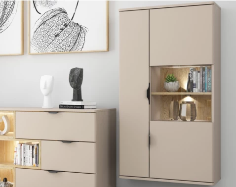 Závěsná vitrína Avola, béžová kašmír/dub cremona