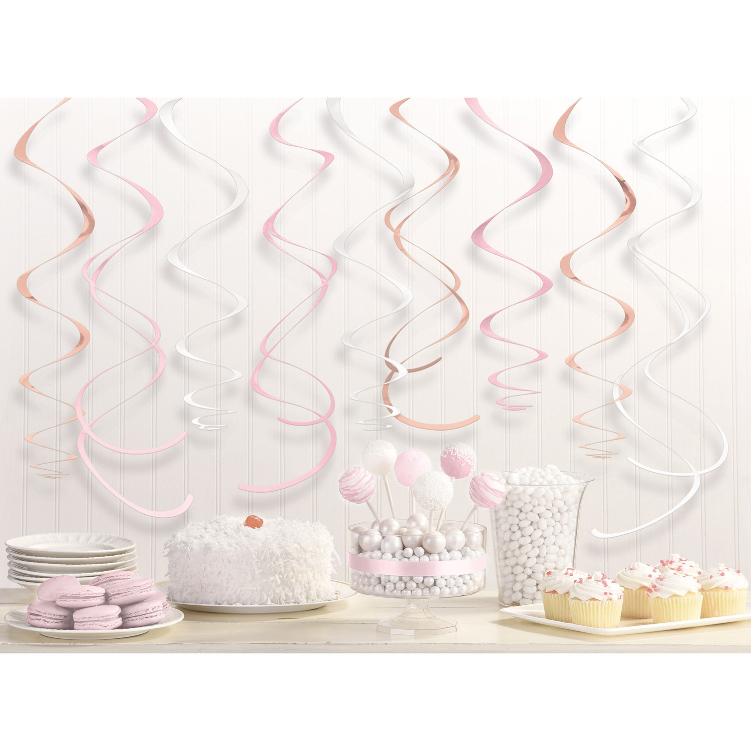 Závěsné dekorace růžovo-zlaté 12 ks Jde o jednotlivé kusy, které jsou v horní části opatřeny plastovým kroužkem - viz ilustrační foto. Kroužek je přerušený, takže je možné kroužek použít k zavěšení v prostoru. Pokud Vám chybí předměty, na které by bylo možné kroužek pověsit, můžete využít lepící gumu, samolepící závěsy (otvorem protáhnete průhledný silon a na ten dekoraci pověsíte) anebo obyčejnou průhlednou lepící pásku, kterou jednotlivé dekorace přilepíte ke stropu.