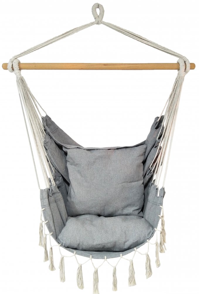 Závěsné křeslo s polštářem světle šedé barvy