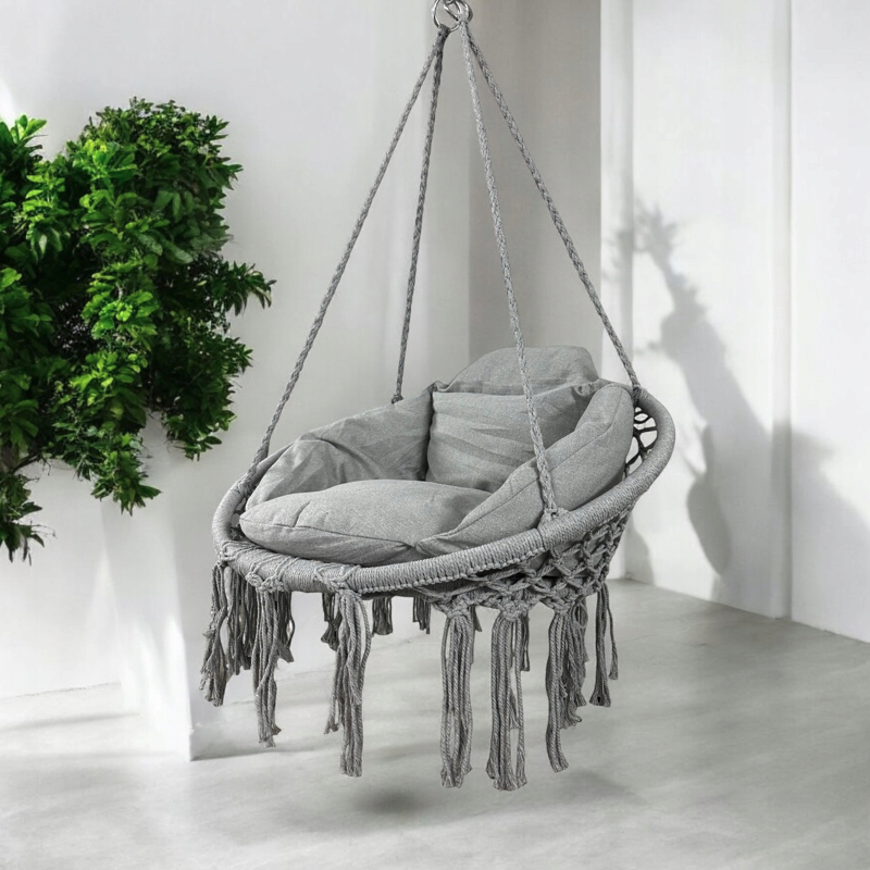 Závěsné křeslo je ideální volbou pro každého, kdo touží po pohodlném a stylovém místě k odpočinku. Je vhodný pro použití na zahradě, na balkóně, terase, ale i v interiéru - v obývacím pokoji, ložnici nebo dětském pokoji. Toto houpací křeslo poskytuje dokonalý odpočinek v pohodlné poloze a umožňuje uživateli užít si jedinečný relaxační zážitek prakticky kdekoli. Křeslo je vyrobeno z odolných a kvalitních materiálů, které zaručují dlouhou životnost a odolnost vůči povětrnostním vlivům. Silný bavlněný materiál je nejen odolný, ale také příjemný na dotek, což značně zvyšuje komfort používání. Součástí křesla jsou také velké, měkké polštáře, které poskytují ještě větší pohodlí a vytvářejí příjemné místo k odpočinku. Čapí hnízdo je skvělou volbou pro každého, kdo chce doma nebo na zahradě přidat pohodlné místo k odpočinku. Dopřejte si zasloužený odpočinek a užijte si chvíle klidu a pohodlí s tímto moderním a stylovým křeslem! Specifikace: Rozměry: zobrazeno v galerii Tloušťka ubrousku s látkou: 2,8 cm Tloušťka obroučky: 0,8 cm Maximální nosnost: 150 kg