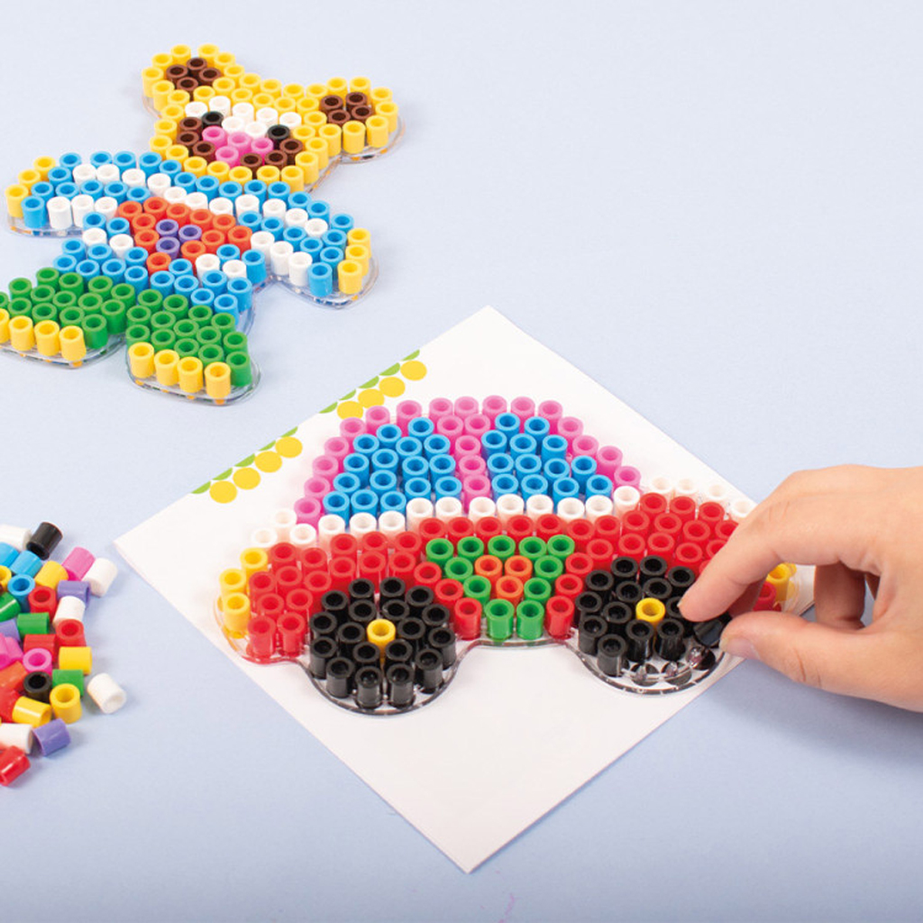 Zažehlovací korálky XL, 600 ks, auto a méďa Balení obsahuje: 600 ks XL zažehlovacích korálků různých barev o průměru 10 mm 2x podložka - méďa a auto cca 18 x 14 cm 2x předloha a pečící papír. K sestavení obrázků z korálků používejte podložky pro korálky, na které buď podle šablon nebo podle vlastní fantazie vytváříte nejrůznější motivy. Poté na vyskládaný obrázek položte běžný pečící papír a zažehlete žehličkou ohřátou na nejvyšší stupeň. Nechte korálky vychladnout, obrázek sejměte z podložky a máte hotovo! Vhodné pro děti na podporu jemné motoriky. Korálky nemusíte jen zažehlovat, můžete je používat jako normální korálky a navlékat je na provázek. Zakupte produkt Zažehlovací korálky XL, 600 ks, auto a méďa z kategorie Výtvarné potřeby | Kreativita | Korálky | Zažehlovací | XL od výrobce Playbox za cenu 345 Kč.