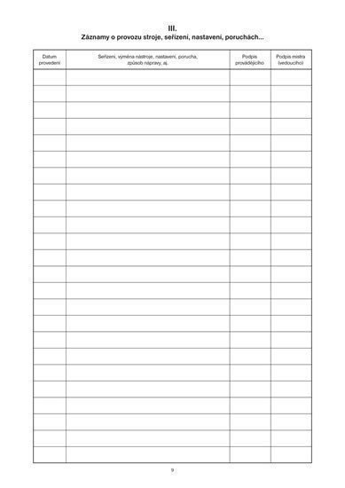 Záznamník provozu tvářecího stroje, A4, 12 listů