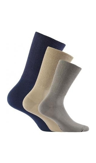 Bavlněné ponožky, které jsou určené zvláště pro osoby s poruchami krevního oběhu, diabetiky nebo osoby trpíci otoky nohou. Ponožky jsou specificky navržené, jemně přiléhají k noze a netlačí. Při nošení jsou velmi pohodlné a umožňují volný oběh krve. Složení: 84 % bavlna, 15 % polyamid, 1 % elastan.