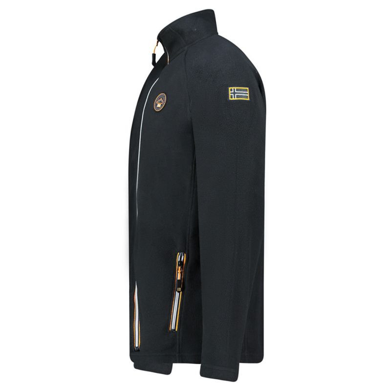 Vlastnosti: Typ produktu: pánská fleecová mikina, fleecová mikina na zip Barva: černá (BLACK DB) Materiál: 100% polyester - vysoce kvalitní fleece Gramáž látky: střední - ideální na podzim a zimu Zapínání: zip po celé délce Střih: regular fit - vypasovaný, ale ne těsný Kapuce: žádná - model bez kapuce Kapsy: 2 boční kapsy na zip Detaily: vyšívané logo Geographical Norway, nášivky a kontrastní lemy Vlastnosti: prodyšný, rychleschnoucí, snadná údržba