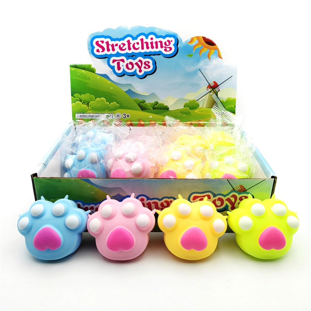 Žertovinka ve tvaru kočičí tlapky je zábavná mačkací hračka, která přináší radost a uvolnění při každodenním stresu. Tato malá antistresová pomůcka je vyrobena z měkkého, pružného materiálu, který umožňuje snadné mačkání a natahování, díky čemuž je ideální pro odreagování i pobavení. Hračka má rozměry přibližně 7 × 6,5 cm, což ji činí vhodnou k nošení v kapse či kabelce a umožňuje ji používat kdykoliv a kdekoliv. Kočičí tlapka je dostupná ve čtyřech pastelových barvách – světle modré, růžové, žluté a zelenožluté, což z ní dělá nejen praktickou, ale i vizuálně atraktivní hračku. Každá tlapka má na sobě bílé „prstíky“ a růžové srdíčko uprostřed, které působí roztomile a přátelsky.