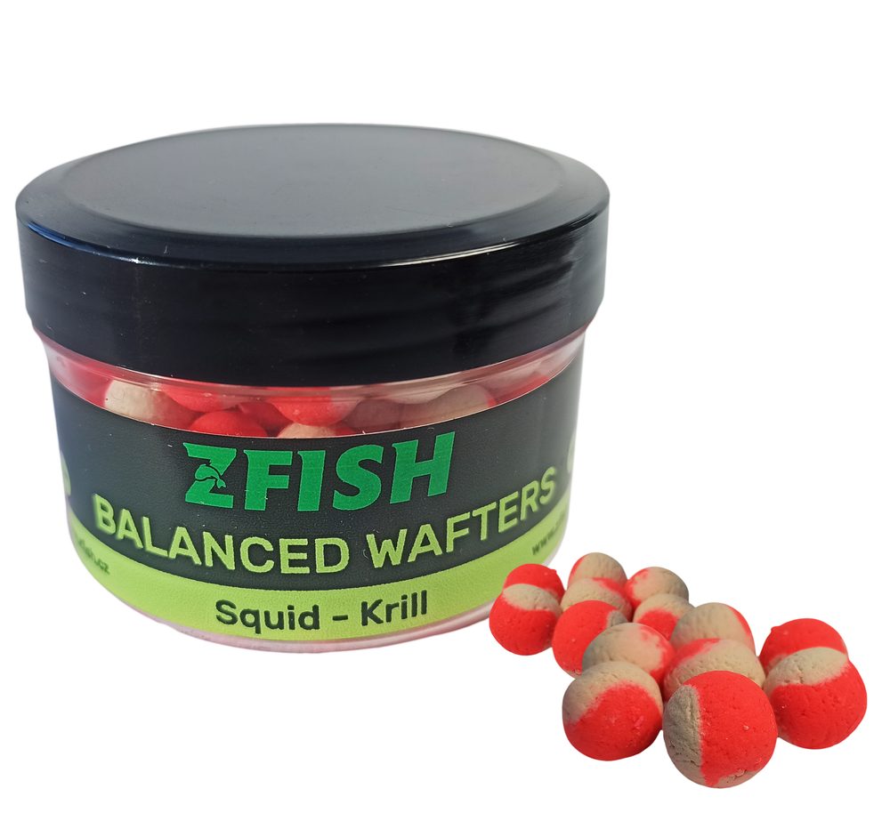 ZFISH Balanced Wafters 8mm je plovoucí nástraha, která se v kombinaci s háčkem stává neutrálně vyváženou. Oceníte ji především při lovu na method feeder, feeder nebo při lovu s klasickým krmítkem. ZFISH Balanced Wafters 8mm je plovoucí nástraha, která se v kombinaci s háčkem stává neutrálně vyváženou. Oceníte ji především při lovu na method feeder, feeder nebo při lovu s klasickým krmítkem. Toto boilies je nesmírně atraktivní, díky dvoubarevnému provedení. Jsou skvělé na krátkodobý lov, závodní chytání, při slabé aktivitě ryb nebo na velmi opatrné ryby. Jejich výhodou je, že zlehka leží u dna a působí tak přirozeněji než např. pop-upy. Jsou však natolik lehké, že kaprovi vletí do tlamy mnohem hlouběji, než očekává. Dají se použít celoročně, včetně velmi chladné vody. K dokonalému fungování použijte spolu s menšími háčky č.10 a 12 Určeno především pro lov na feeder a method feeder Kriticky vyvážená nástraha Kontrastní dvoubarevná barva Průměr: 8 mm Balení: 20gr