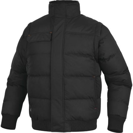 Prošívaná bunda. Odnímatelnými rukávy. Zapínání na zip, krytý lištou na patenty. Pletené manžety a spodní část oděvu. Odepínací prošívaná kapuce se zapínáním na druky. 5 kapes včetně 2 vnitřních: 1 kapsa na zip a 1 kapsa na telefon lištou na suchý zip. Materiál: Prošívaný polyamid s PU povrstvením