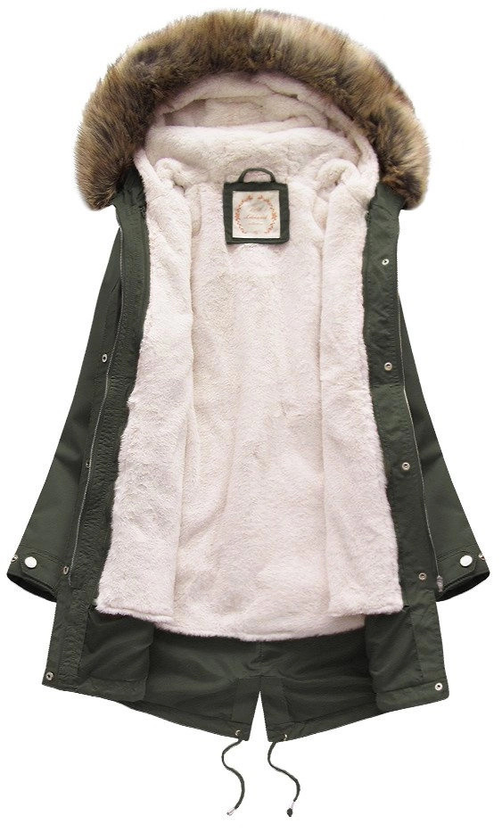 Dámská zimní bunda parka v army barvě s odepínací podšívkou a kapucí (7626) odstíny zelené XXL (44)