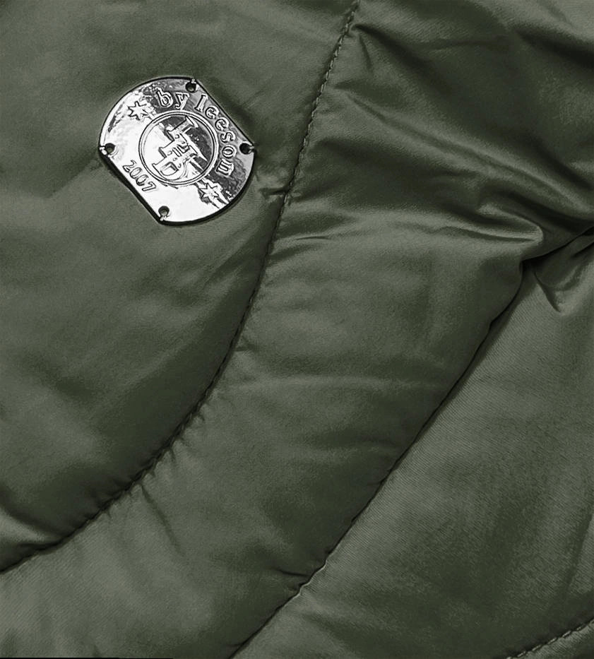 Dámská zimní bunda v olivové barvě v délce ke kolenům (m-21601) odstíny zelené S (36)