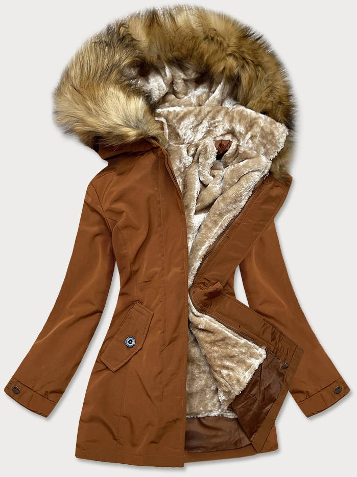Dámská zimní bunda v karamelové barvě s odepínací kožešinovou podšívkou (m-21005) odstíny hnědé M (38)