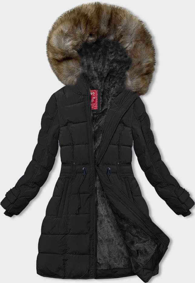 Domů Oblečení a móda Dámské oblečení Dámské bundy a kabáty Černá dámská zimní bunda s kožešinovou podšívkou (LHD-23063) odstíny černé S (36)