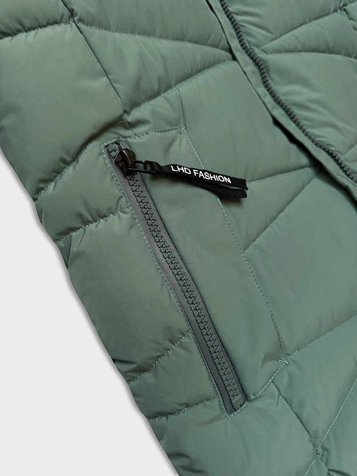 Šedozelená dámská zimní bunda s kožešinovou podšívkou LHD (LHD-24578) odstíny zelené XL (42)