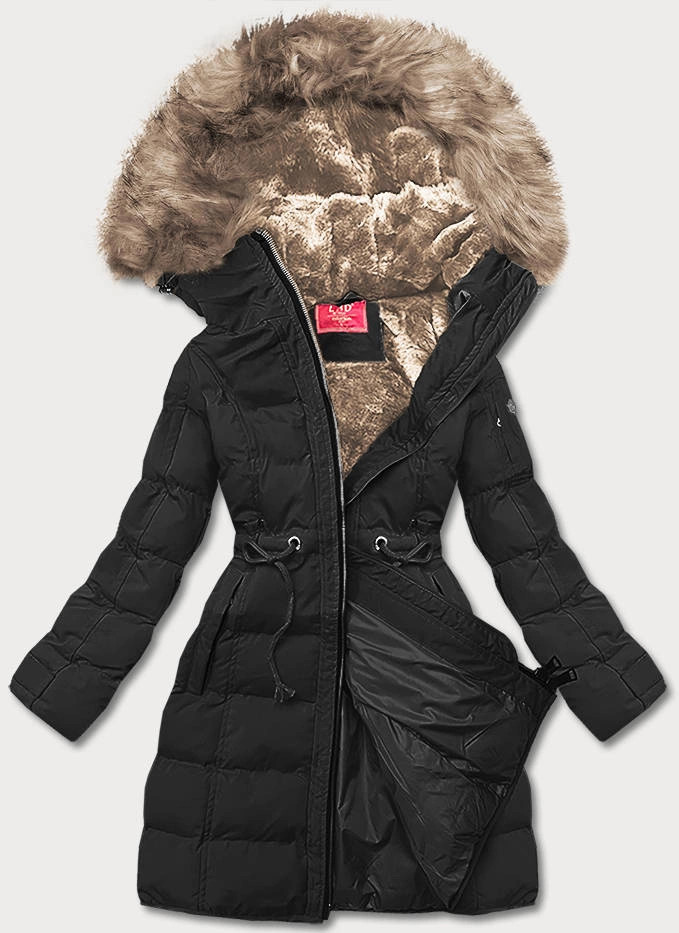 Černá dámská zimní bunda s kapucí (m-21603) odstíny černé XXL (44)