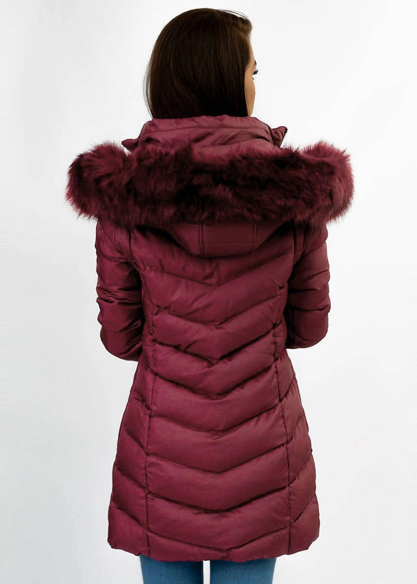 Věnujte prosím pozornost při výběru velikosti dle velikostní tabulky uvedené níže. Velikosti neodpovídají běžně nošené konfekci. Dámská bunda s odepínacími rukávy, která je zateplená syntetickou péřovou výplní Bunda má dvě kapsy se zapínáním na patentku. Kapsy jsou ozdobené zipem s připnutou bambulí. Model má kapuci olemovanou kožešinou. Kapuci je možné odepnout (připíná se zipem). Také kožešinu lemující kapuci je možné odepnout (připíná se knoflíčky). V kapuci se táhnou stahovací šňůrky se stopery. Na bocích bundy jsou rozparky se zapínáním na patentky. Na koncích rukávů jsou skryté stahovací lemy. Složení: vrchní vrstva - 100 % polyester, podšívka - 100 % polyester. Modelka na fotografii je vysoká 163 cm a nosí velikost S.