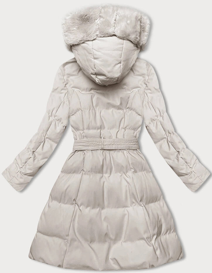 Dámská zimní bunda v barvě ecru s ozdobnou kožešinou (5M3158-254) odstíny béžové XL (42)