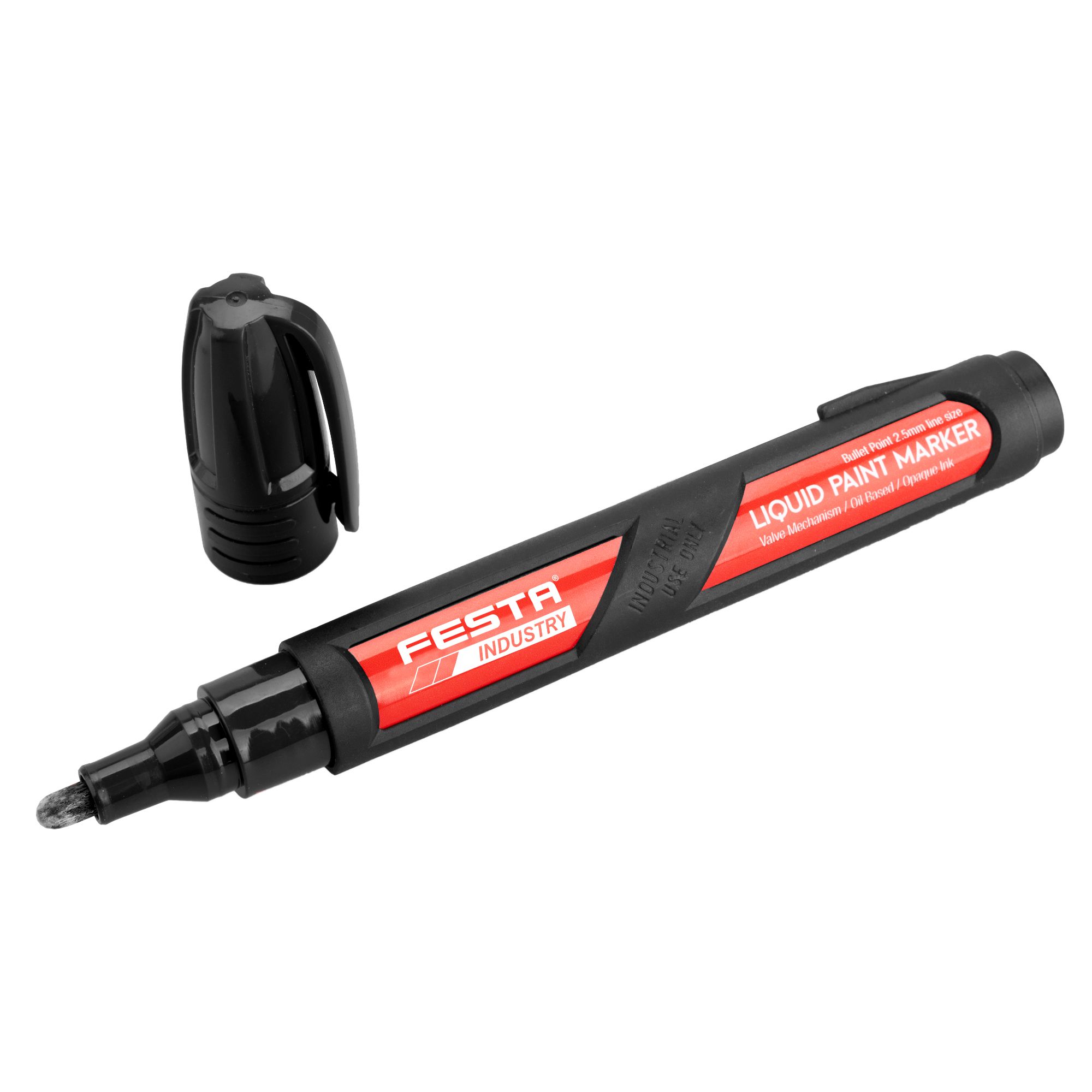 Průmyslový značkovač FESTA INDUSTRY – černý, permanentní, odolnýTento průmyslový permanentní značkovač FESTA INDUSTRY je ideální volbou pro přesné a dlouhotrvající značení na široké škále materiálů. Díky syntetické barvě na olejové bázi je zaručena výjimečná přilnavost a vysoká odolnost vůči otěru, vodě i povětrnostním vlivům.Odolný hliníkový obal chrání značkovač před poškozením a zajišťuje dlouhou životnost i v náročných podmínkách. Speciální ventilem řízený hrot zabraňuje vysychání barvy a umožňuje plynulé a přesné značení.Hlavní vlastnosti:> Permanentní značení – odolná syntetická barva pro dlouhotrvající výsledky> Vysoká přilnavost – vhodné pro širokou škálu povrchů> Ventilový mechanismus – zabraňuje vysychání a zajišťuje rovnoměrný tok barvy#Str10> Robustní hliníkový obal – odolnost i pro náročné pracovní podmínky> Univerzální použití – značení na kov, sklo, dřevo, plasty, fólie, dlažbu a další materiályIdeální pro:> Značení kovových konstrukcí a profilů> Práci ve stavebnictví, výrobě a logistice> Popisy na sklo, dřevo, plasty, keramiku a další povrchySpolehlivý a odolný značkovač pro každého profesionála!