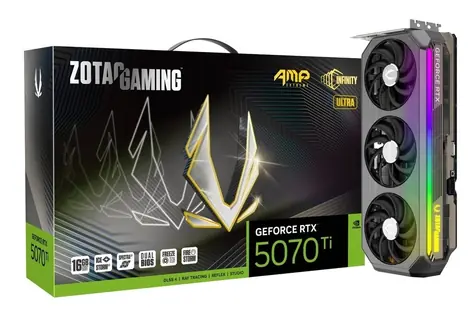 ZOTAC GeForce RTX 5070 Ti AMP Extreme Infinity Ultra 16GB / 2295 - 2572Mhz / 16GB GDDR7 / 256bit / 1x HDMI + 3x DP (ZT-B50710BU-10P)