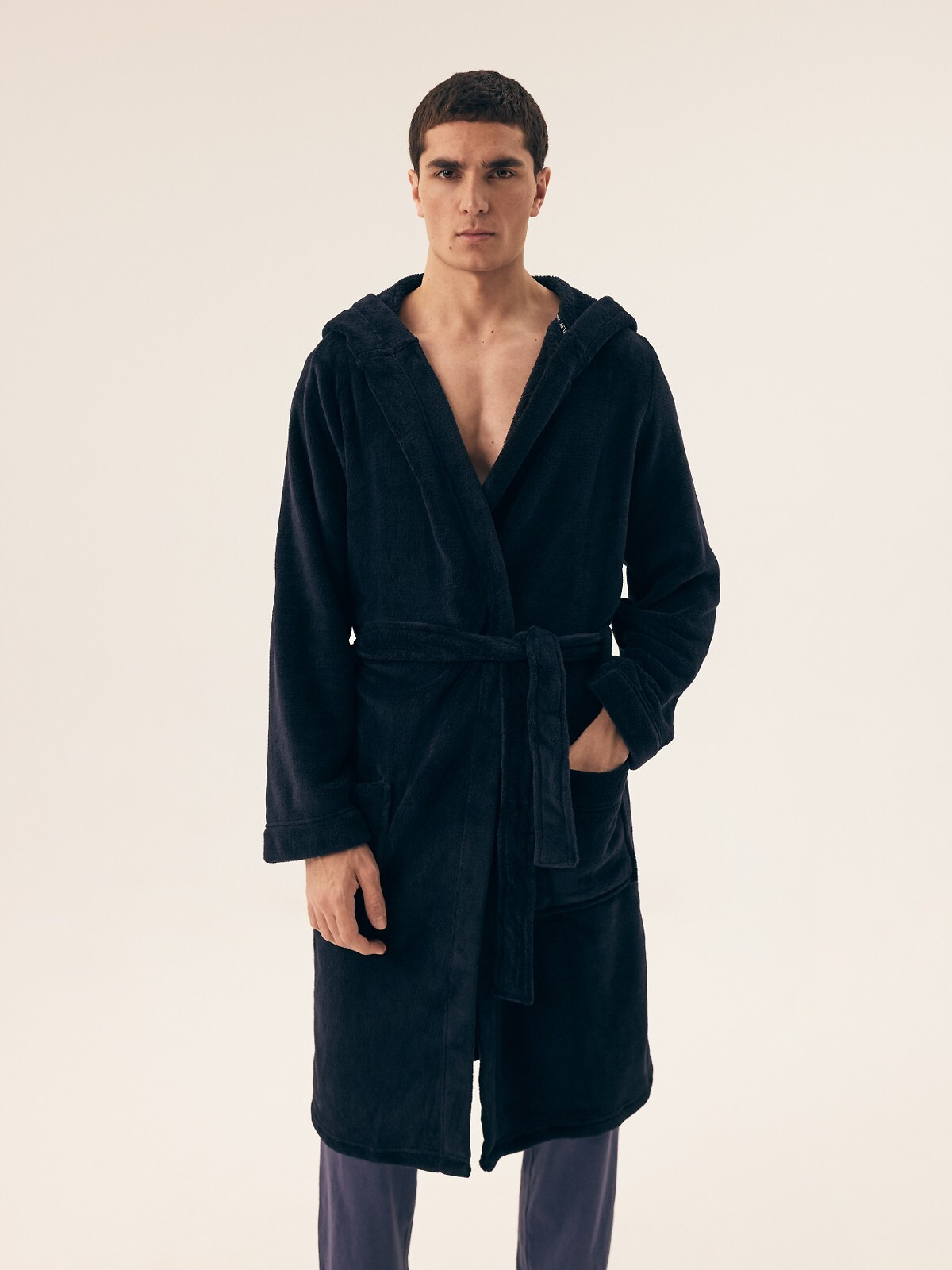 Pánský župan s kapucí - příjemný a měkký úplet - zavazuje se v pase - pohodlné kapsy na bocích Složení: 100% polyester