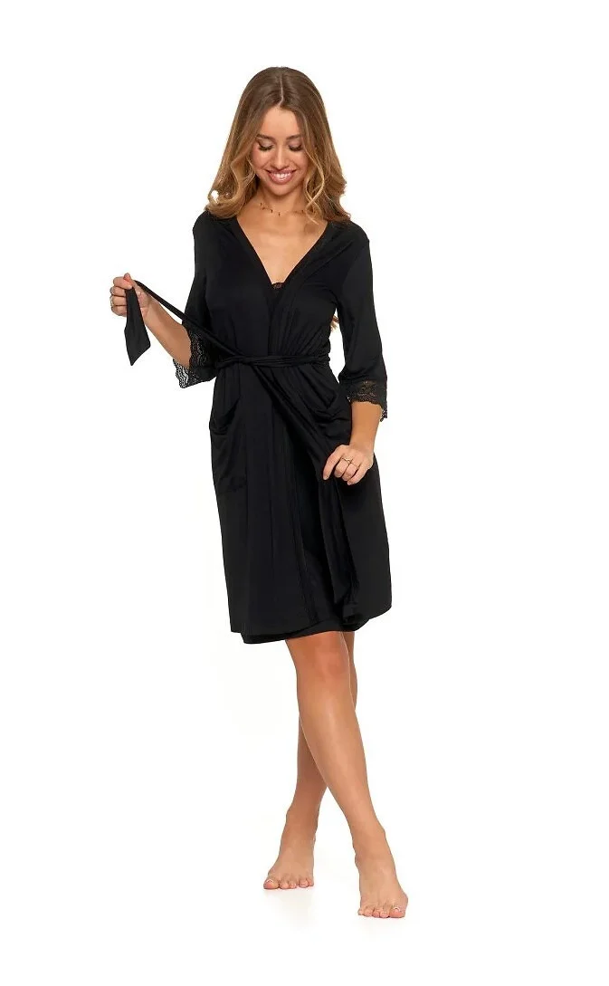 Dámský župan - z vysoce kvalitní bavlny - 7/8 rukáv - manžety zdobené jemnou krajkou - zavazuje se v pase - kapsy na bocích - baleno v plastovém sáčku Složení: 95 % viskóza, 5 % elastan