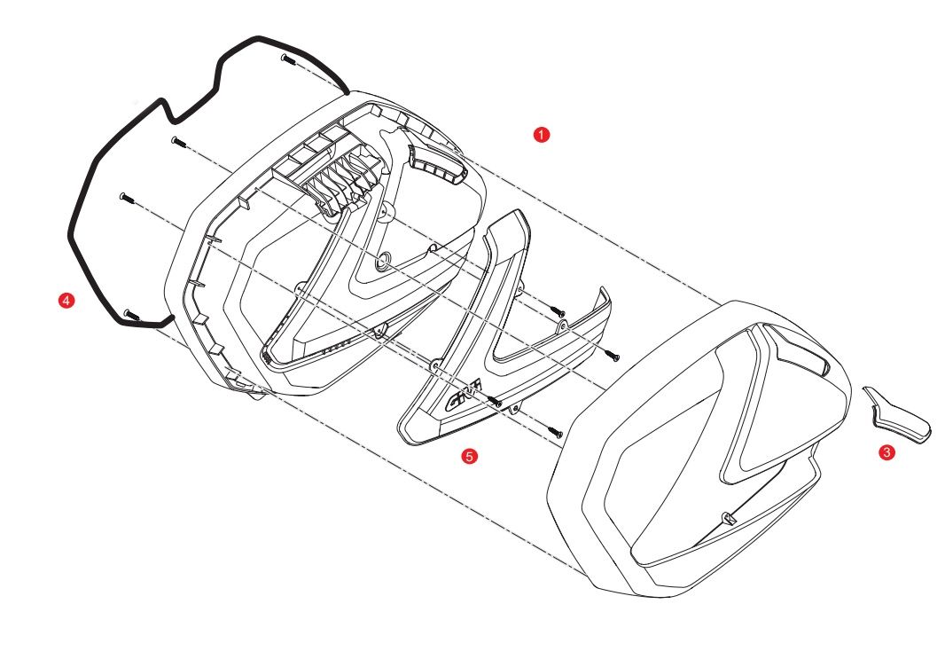 Zv37Cnnmsx horní víko kufru V37Nn kompletní, levé, černé, s červeným plexi