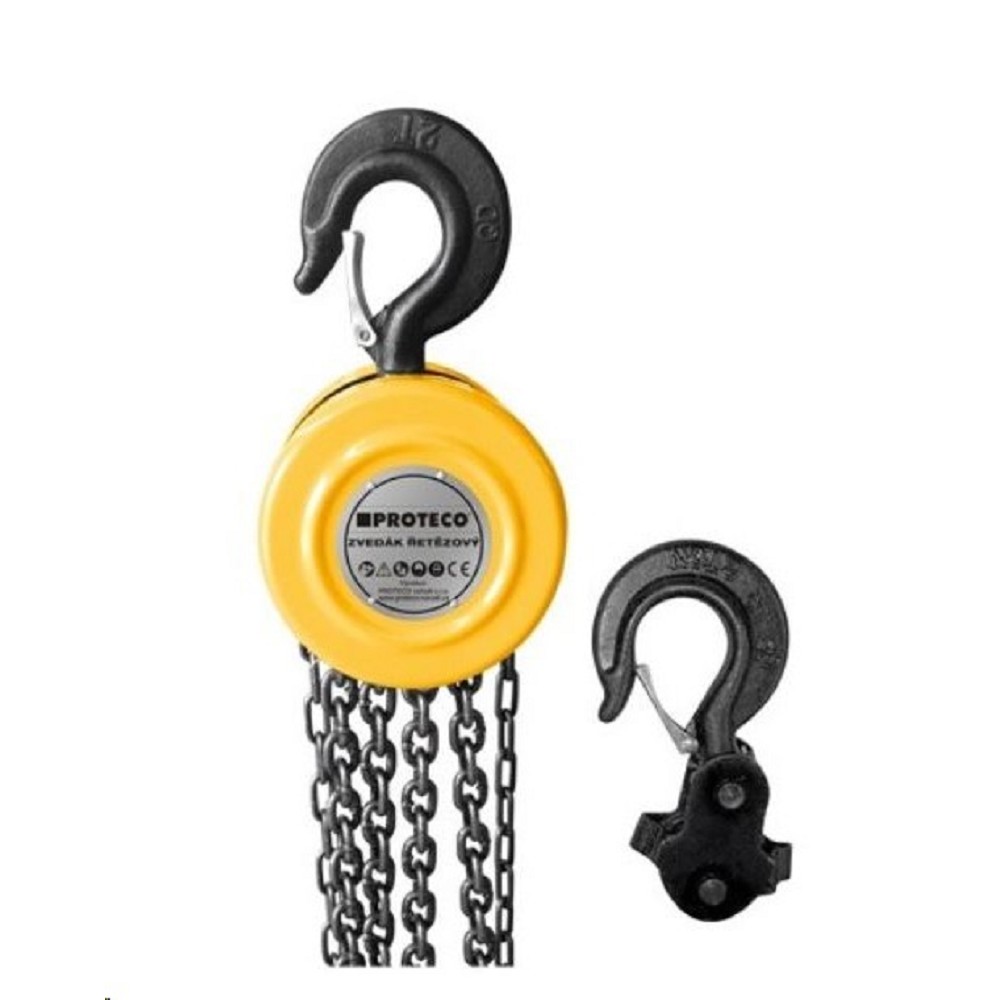 Zvedák řetězový 500 kg 2,5 m Proteco 51.09-ZR-0500 Popis produktu Hmotnost: 6 kg PROTECO zvedák řetězový 500 kg je mechanický kladkostroj o maximální nosnosti 500 kg, určený pro zdvihání těžkých předmětů ve svislé poloze. Ideální nářadí pro mechaniky a kutily. Díky své konstrukci a snadné ovladatelnosti je vhodný do dílen, servisů, garáží, výrobních hal atd. Maximální výška zdvihu je 2,5 m.