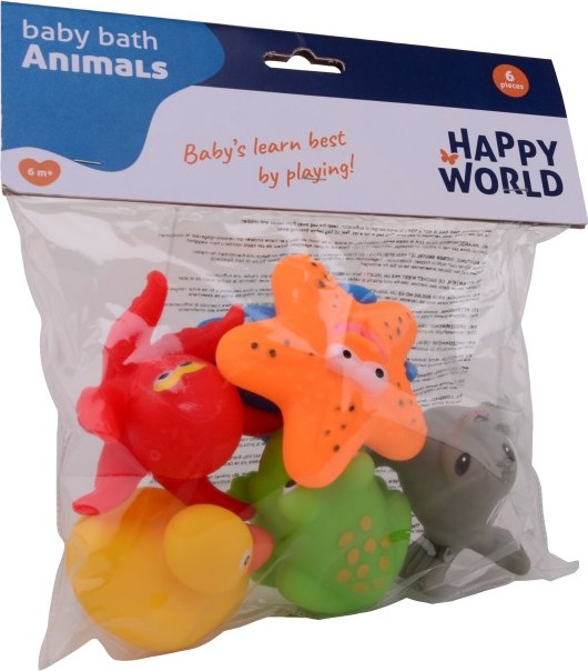 Zvířátka do vody 6 ks – chobotnice, žába, kačenka, hvězdice, lachtan a delfín. Zdravotně nezávadné, odpovídá normám EU.